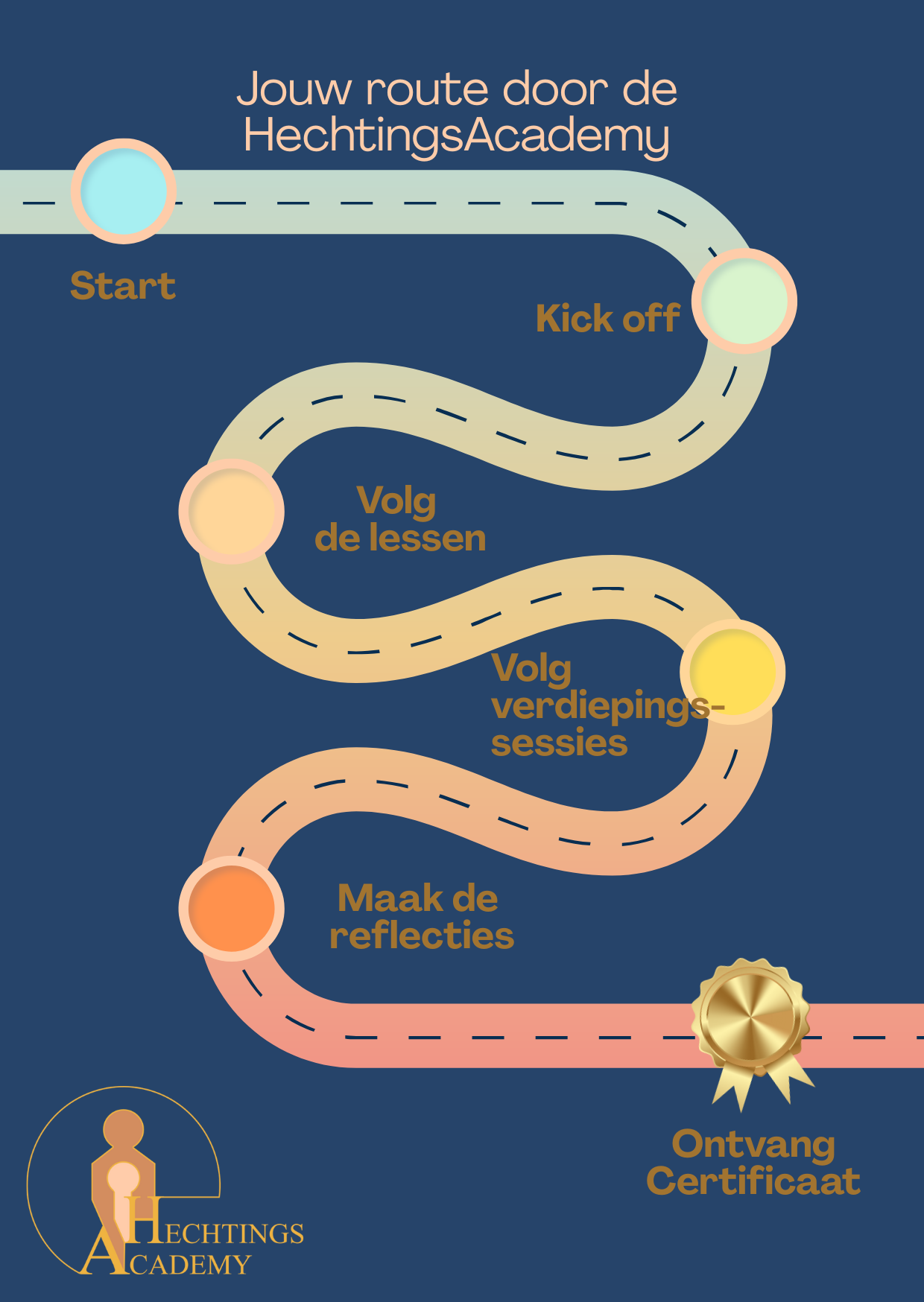 Je stapt niet alleen in een cursus. Je stapt in een traject dat je draagt terwijl jij leert sturen..